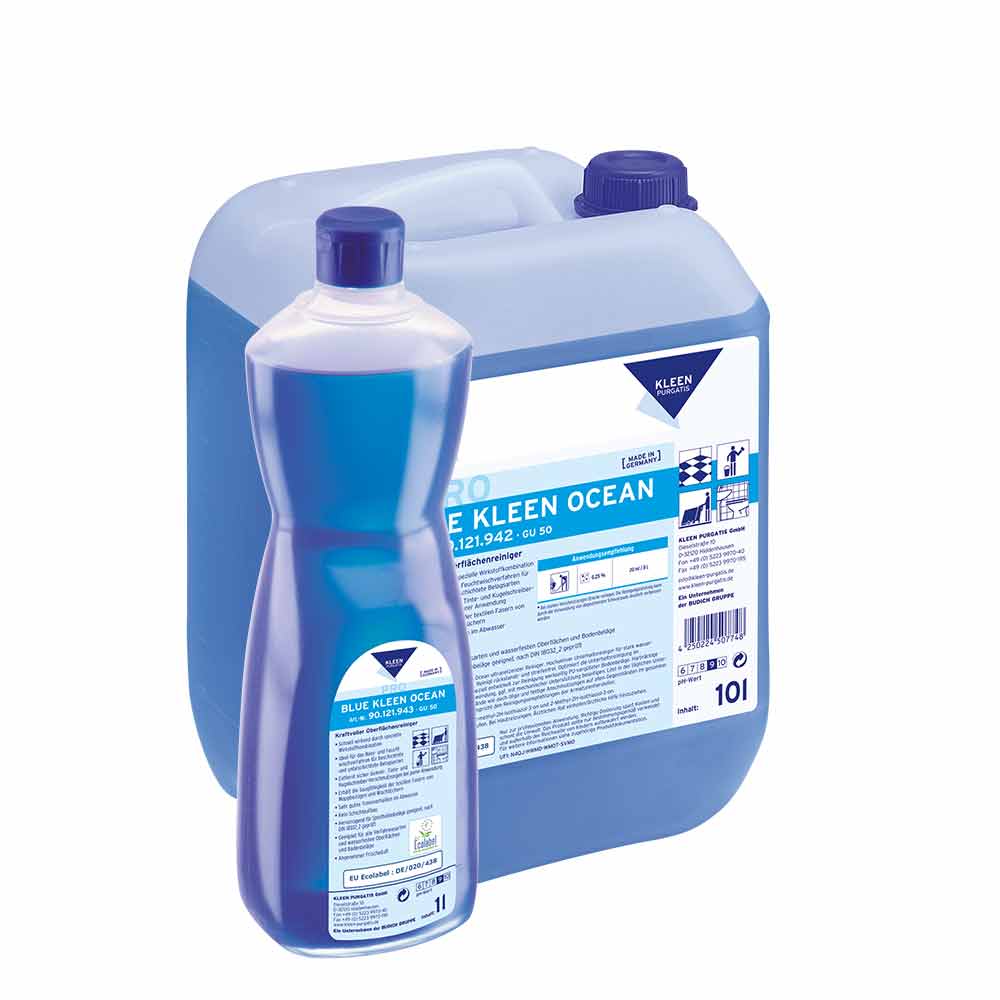 Blue Kleen Ocean to zoptymalizowany środek do pielęgnacji elastycznych wykładzin podłogowych o wysokiej wodoodporności. Czyści bez pozostałości i smug. Do bieżącego czyszczenia 1 lub 2 stopniowego. Specjalnie opracowany do wykładzin podłogowych zabezpieczonych fabrycznie powłoką PU. Uporczywe zanieczyszczenia usuwać środkiem nierozcieńczonym, ewentualnie z wykorzystaniem mechaniki. Podczas codziennego czyszczenia rozpuszcza osady wapienne oraz oleiste i tłuste zabrudzenia na wszystkich przedmiotach w całym obszarze sanitarnym.